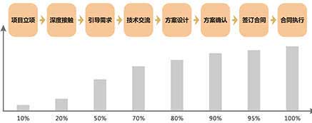 深度接觸:此項目跟蹤已經有三個月了,基本上與設備采購科長溝通為主,與其處長、總經理均見面一次介紹公司及技術優勢。同時,了解到總經理是技術出身,非常在乎技術... 更多>>要想簽單,需要耐得住寂寞!